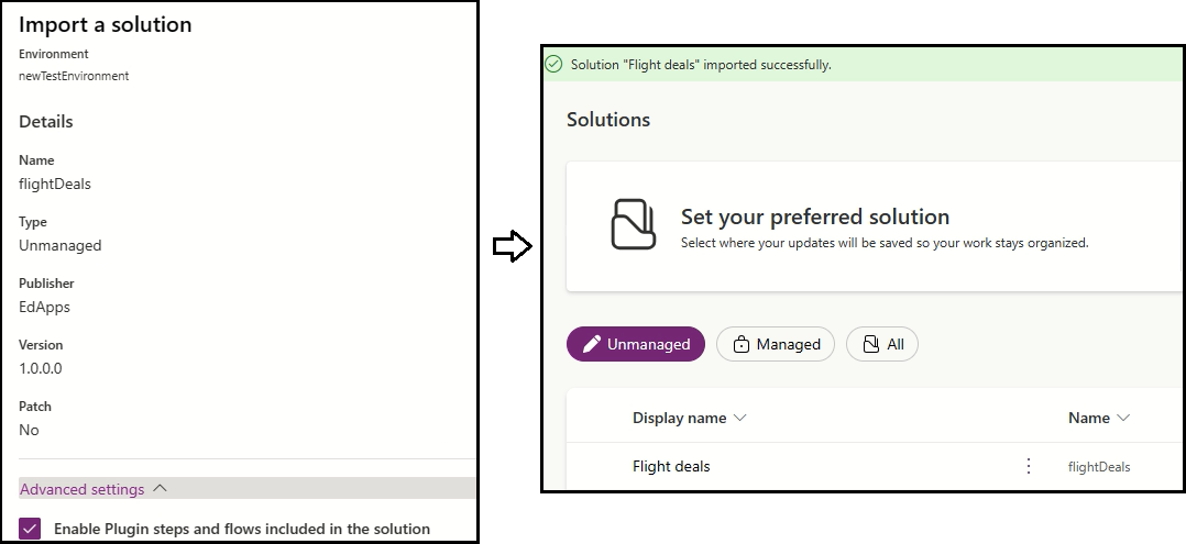 Importing the [Unmanaged] solution