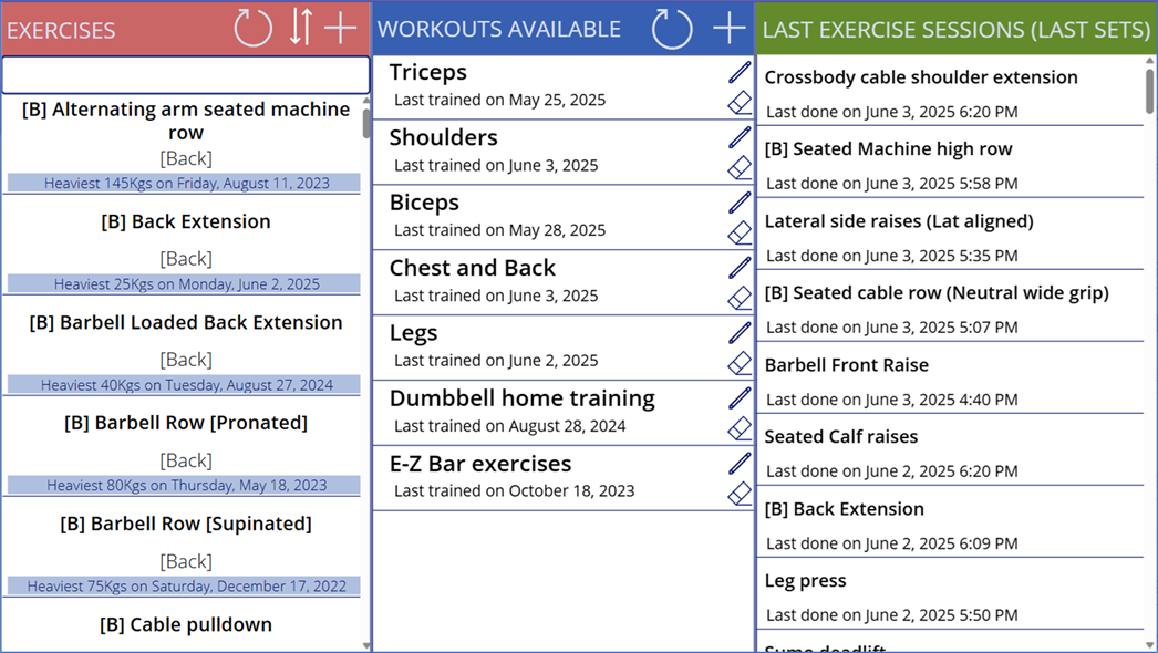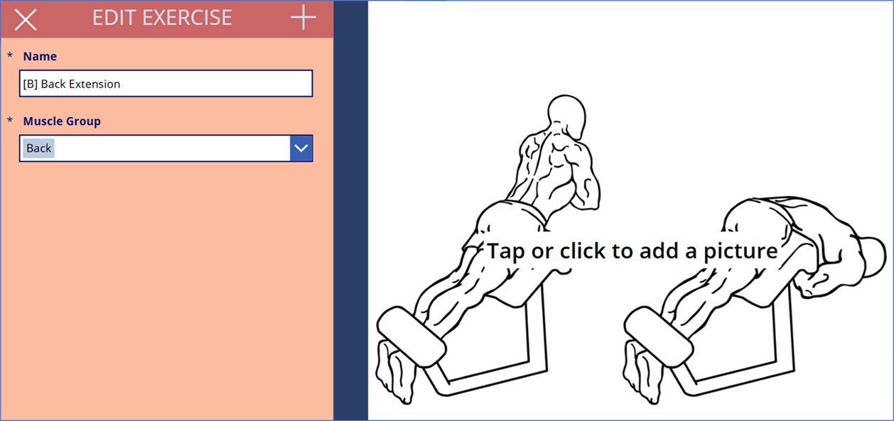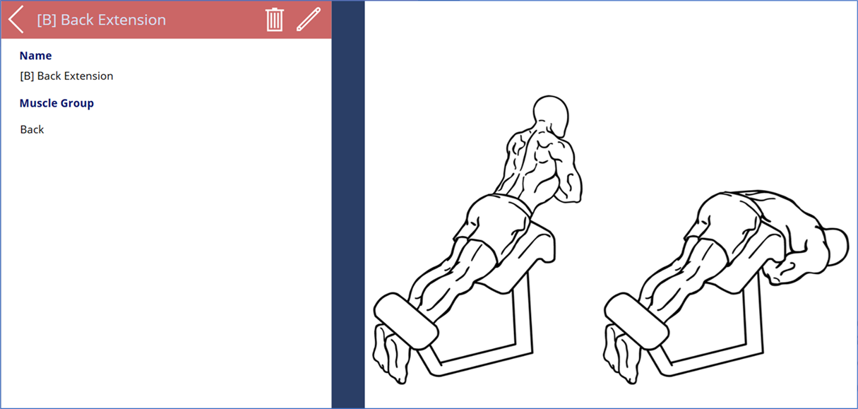 In this screen, you can look into exercise details before editing them or adding a picture to it. Pictures on the app are saved as base64 text on Dataverse, which I personally find more elegant as a solution, keeping data types consistent as text.